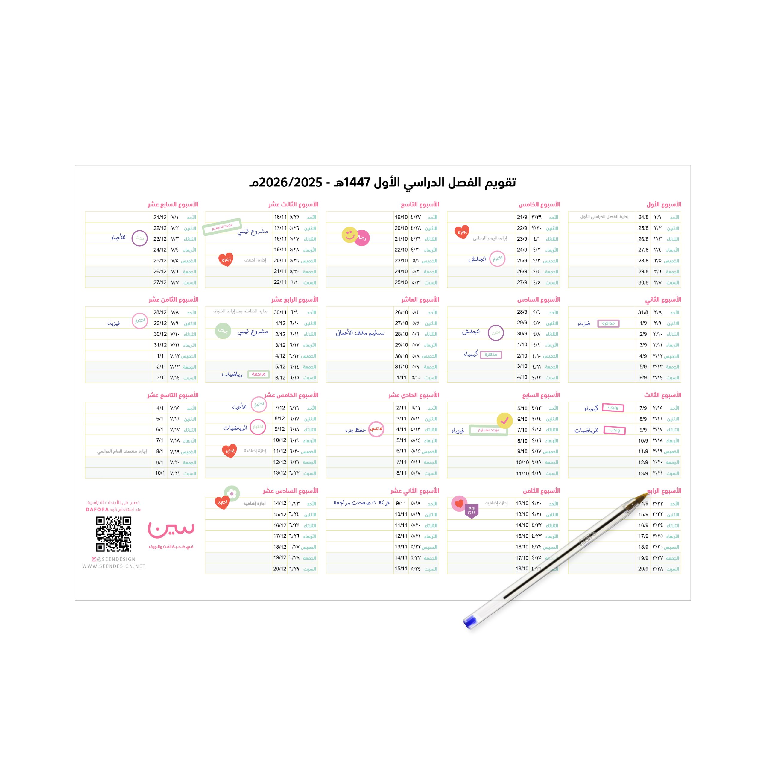 هديتنا لكم ككل عام، التقويم الدراسي مجاناً! حيث يمكنكم تحميله على ورق A4 أو A3، والتخطيط للفصل الدراسي كاملاً!