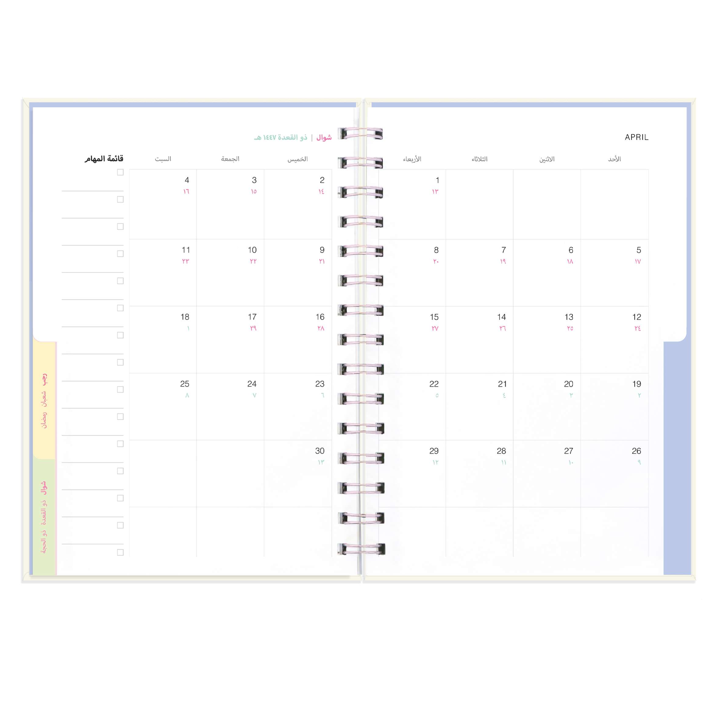 - غلاف كرتوني يحافظ على شكل الأجندة.