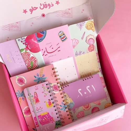 - مزدوج الوجهين، جهة لتقويم عام 2026م، وعند قلبه يصبح تقويم 1447هـ، مع دمج التواريخ الميلادية والهجرية على كل وجه، لتتابعي أيامك بسهولة وأناقة.