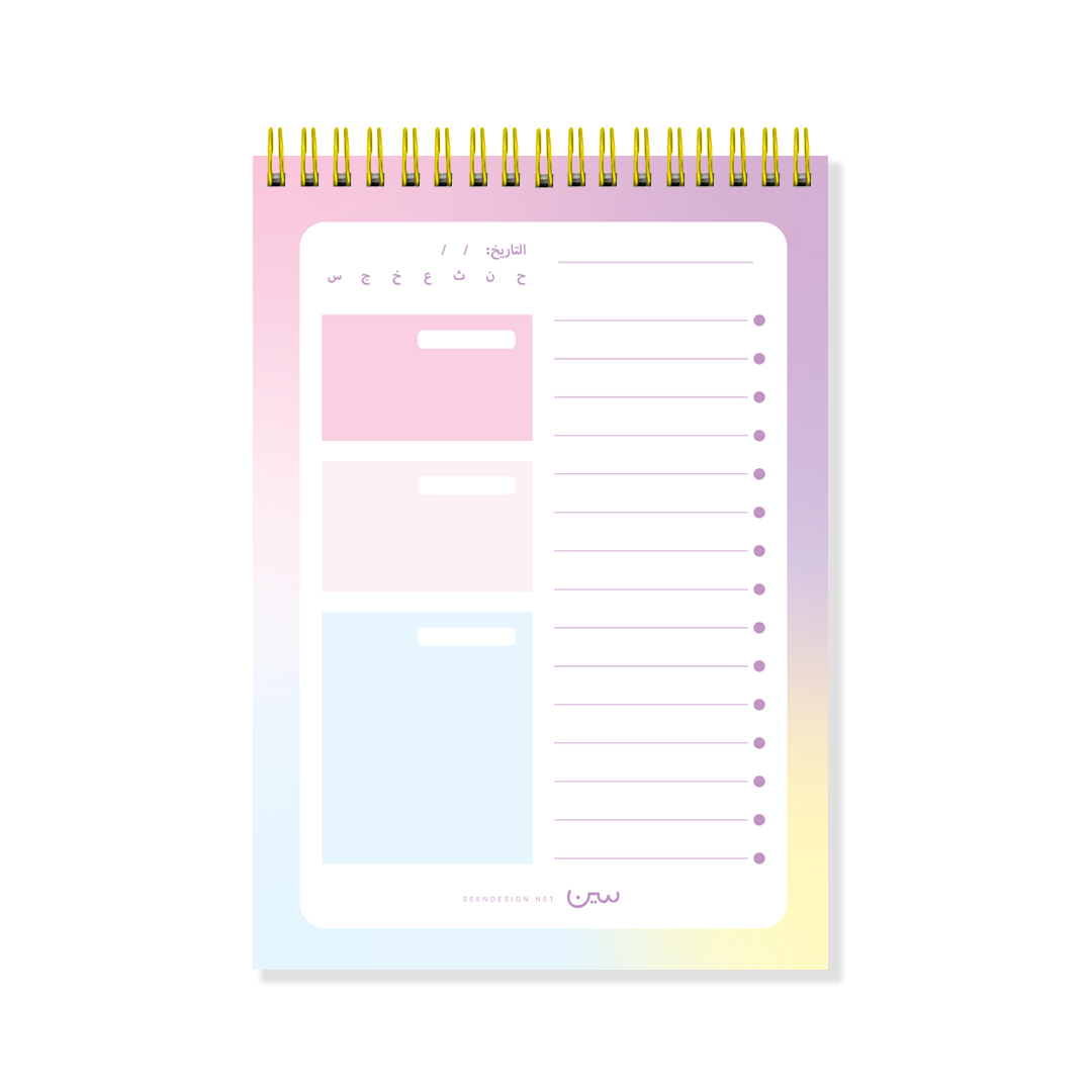 ابدئي يومك بتنظيم جميل ولمسة من الألوان مع منظّم “طيف”، بتدرجات ألوان الطيف في كل صفحة.